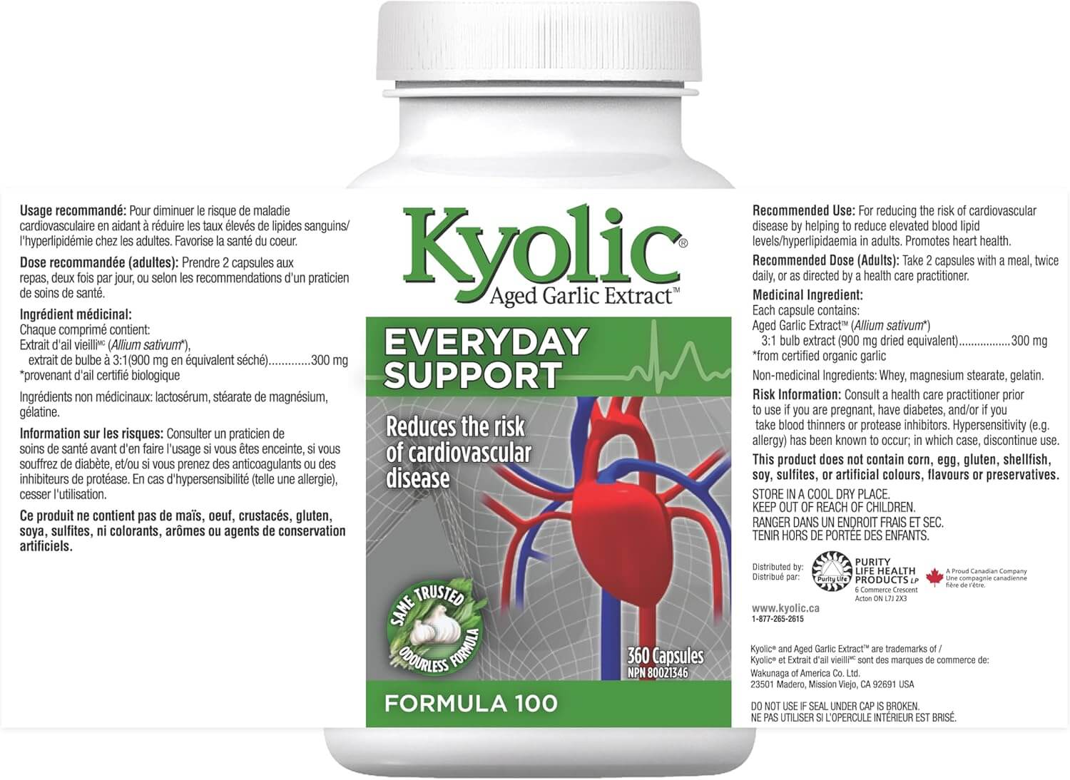 Kyolic Aged Garlic Extract™ begins with 100% organically† grown garlic from California. It is then aged to perfection in a unique extraction process to eliminate odour and create beneficial compounds found only in Kyolic.